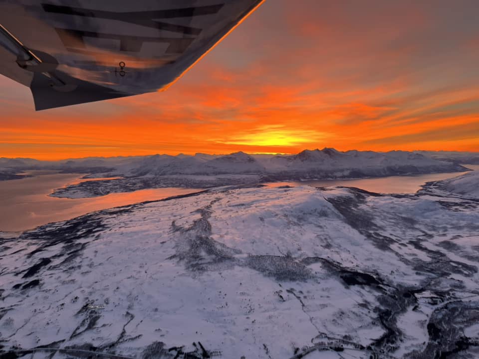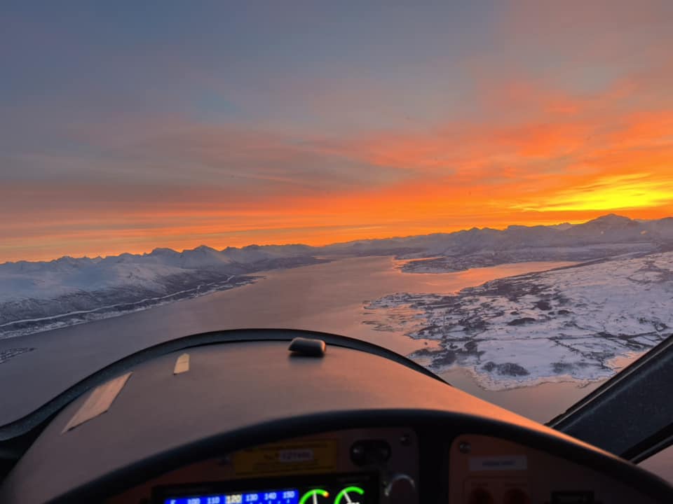 Mandag 1. januar fløy Martin Hansson årets første flytur. Selv om solen her i Tromsø fortsatt befinner seg under horisonten er mørketidslyset utrolig flott å fly i. Det defineres som VFR dag.